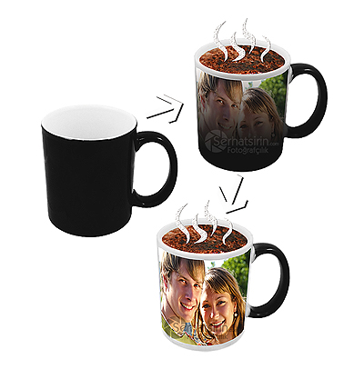 Sihirli kupa içine koyduğunuz kahve, çay veya sıcak su siyah kupanızı, içindeki saklı fotoğrafları ortaya çıkartacak şekilde tasarlanmıştır. Sıcak su konulduğunda kısa süre içinde fotoğraf belirir ve soğuduğunda kaybolur.